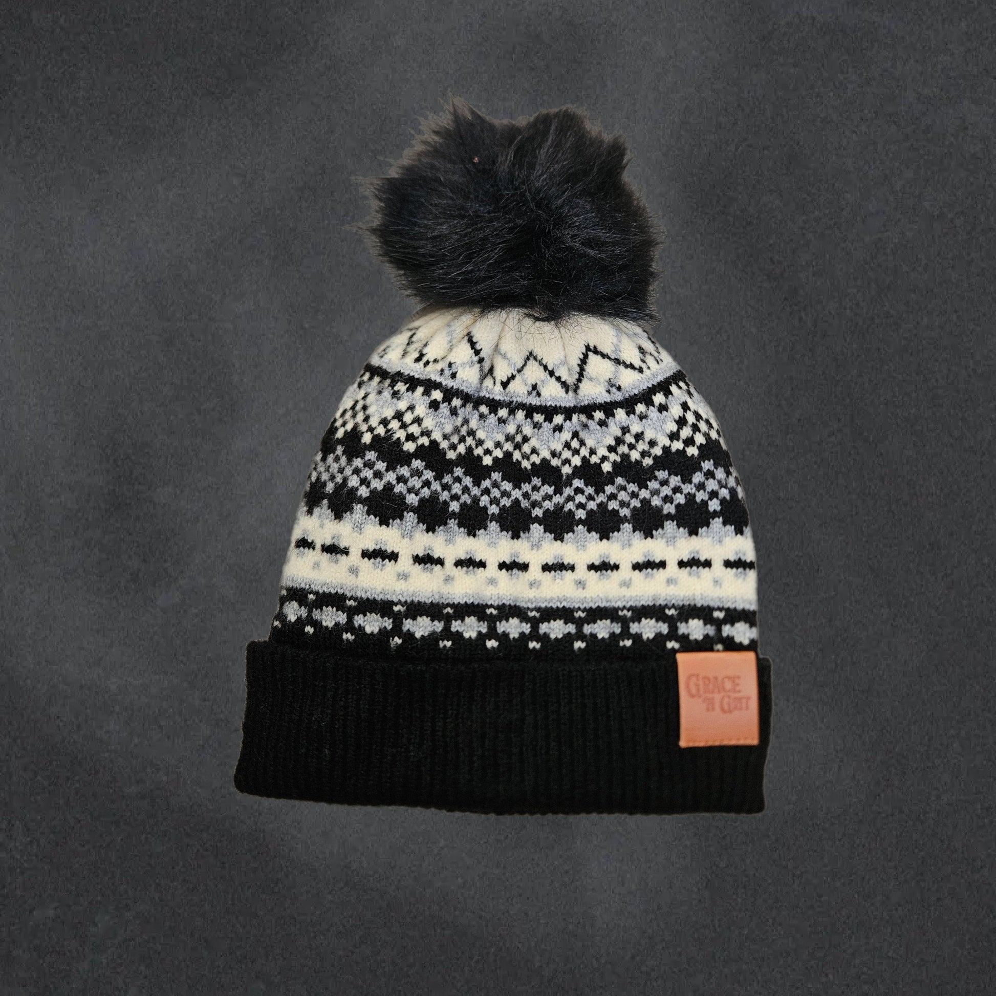 Stay cozy and classic with the Frontier Ridge Beanie. Featuring a rich blend of golden wheat, crisp white, and deep navy tones, this hat is inspired by the timeless beauty of the western frontier. The intricate knit pattern adds a touch of rustic charm, while the plush pom on top brings a playful twist.